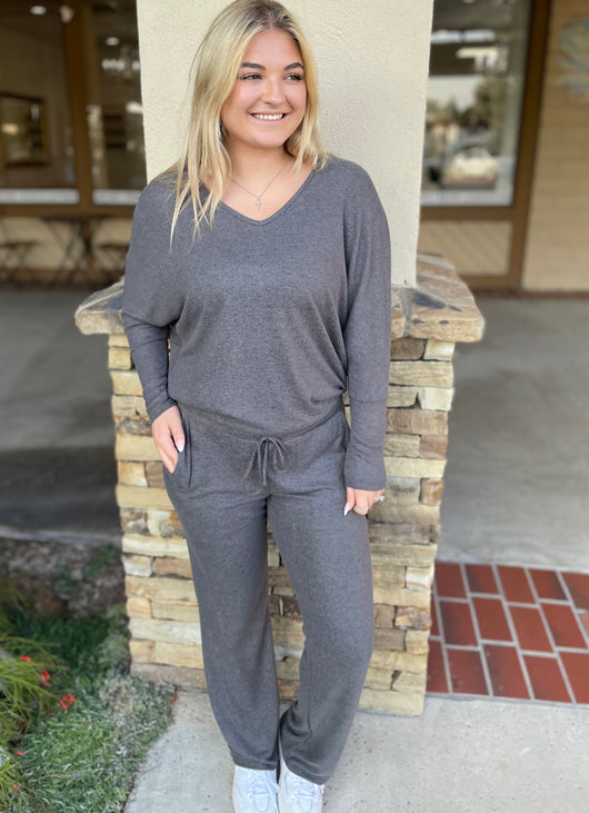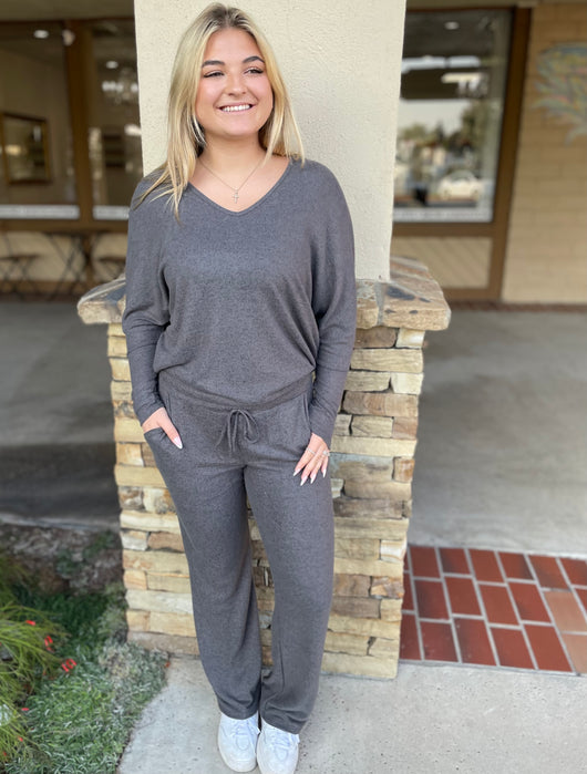 Smokey Soft Brushed Hacci Straight Leg Loungewear Pants w/Pockets & Drawstring