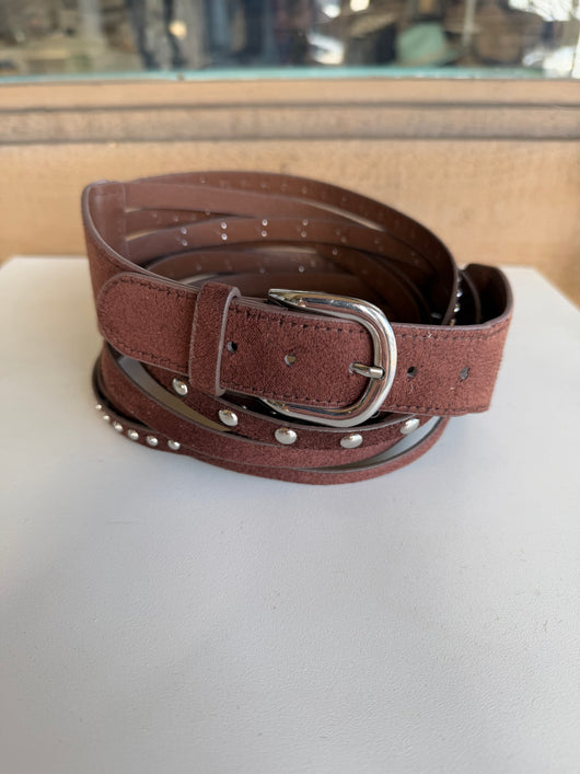 Brown Suede Feel & Silver Studded Twisted Belt