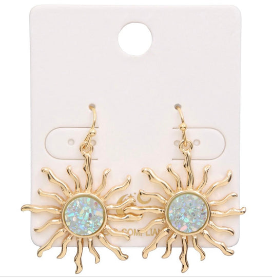 Gold & Aurora Borealis Stone Sunburst Earrings