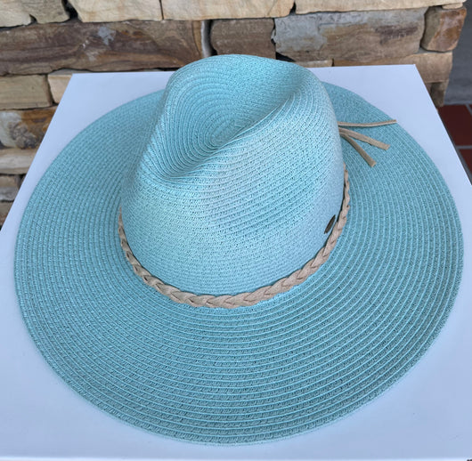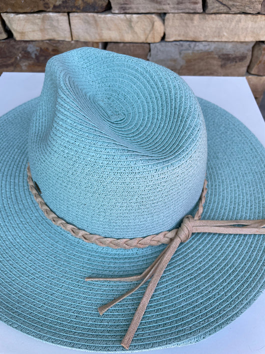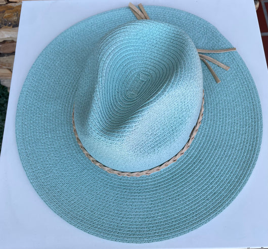 Ocean Blue Straw Sun Hat w/Tan Braided Band
