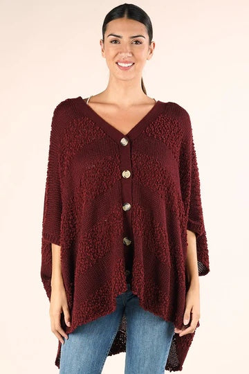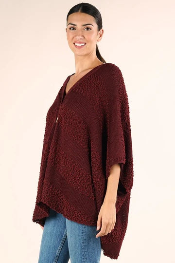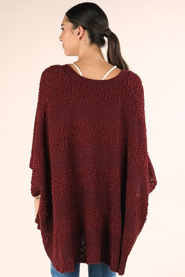 Wine Popcorn Striped Oversized Button Down Sweater Top