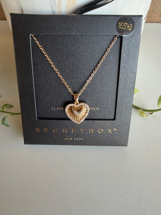 14K Gold Dipped CZ Heart Necklace by Secret Box