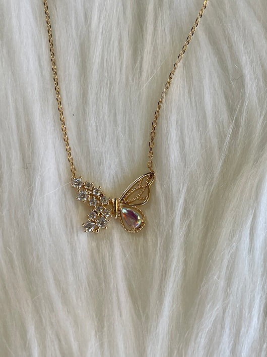 Flutter Gold & Rhinestone Butterfly Necklace
