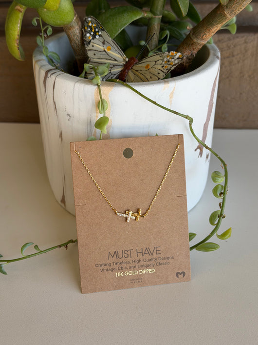 Sideways Double Crosses 18K Gold Dipped Necklace