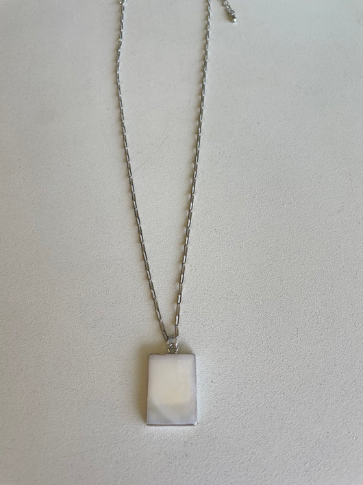 Silver Chain Necklace w/Mother of Pearl Rectangle Stone