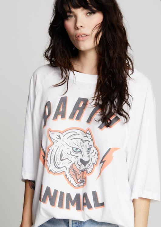 Party Animal OS Burnout Vintage White Graphic Tee