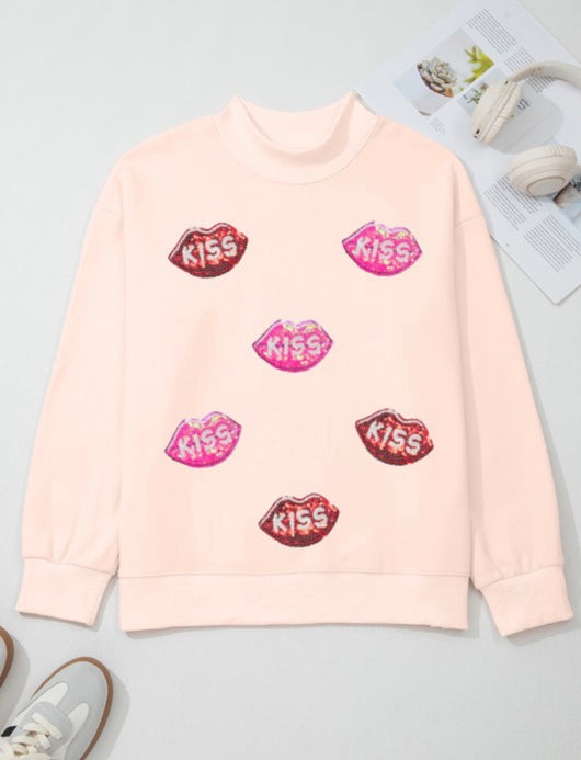 Sequins Kiss Lips Pink Mock Neck Sweater