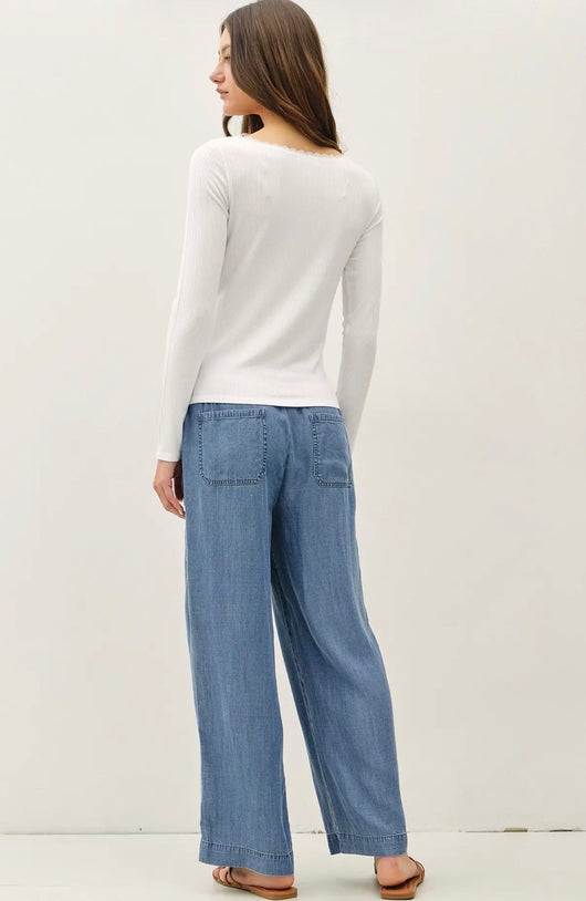 Medium Denim Wash Ultra Soft Drawstring Pants w/Pockets
