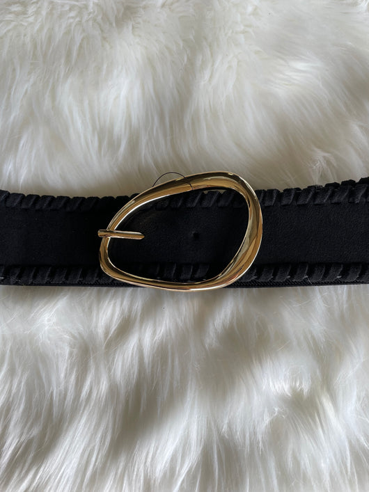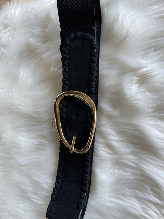 Alexa Koi Black Suede & Cinch Belt w/Abstract Gold Buckle