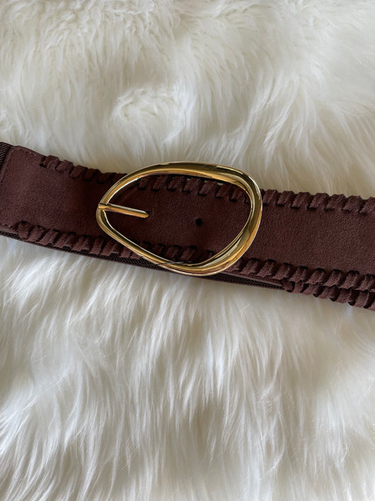 Alexa Koi Dark Brown Suede & Cinch Belt w/Abstract Gold Buckle