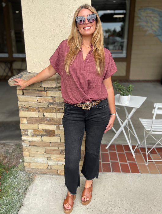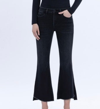 Ali Black Wash Mid Rise Super Soft & Stretch Crop Flare jeans by Vervet