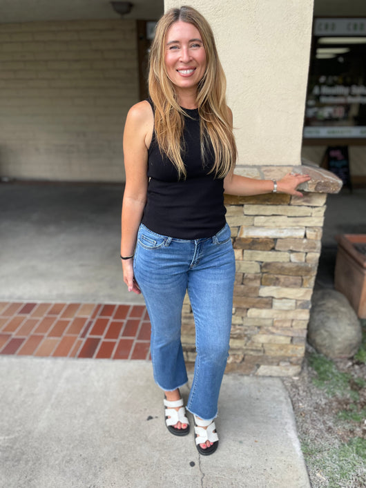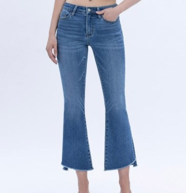 Ali Blue Denim Wash Mid Rise Super Soft & Stretch Crop Flare jeans by Vervet