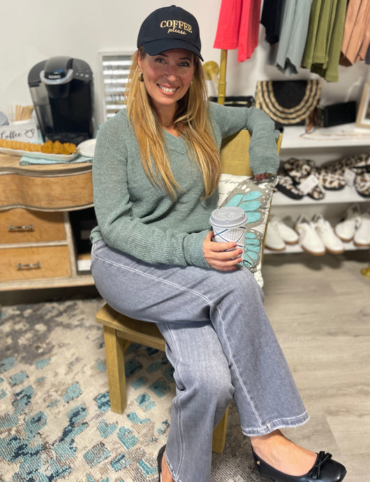 Gray Wash High Rise Slim Wide Crop Stretch Jeans by Vervet