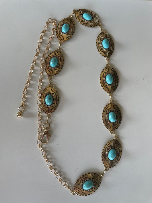Sedona Antique Gold & Turquoise Concha Chain Belt