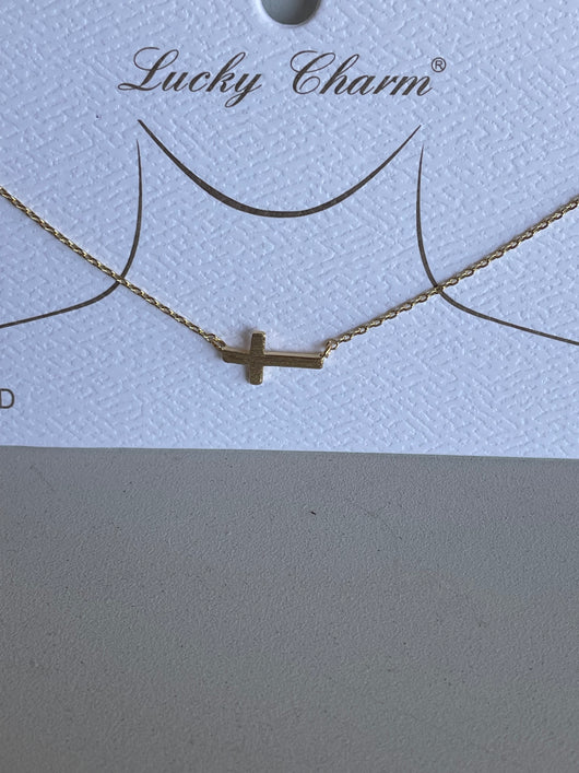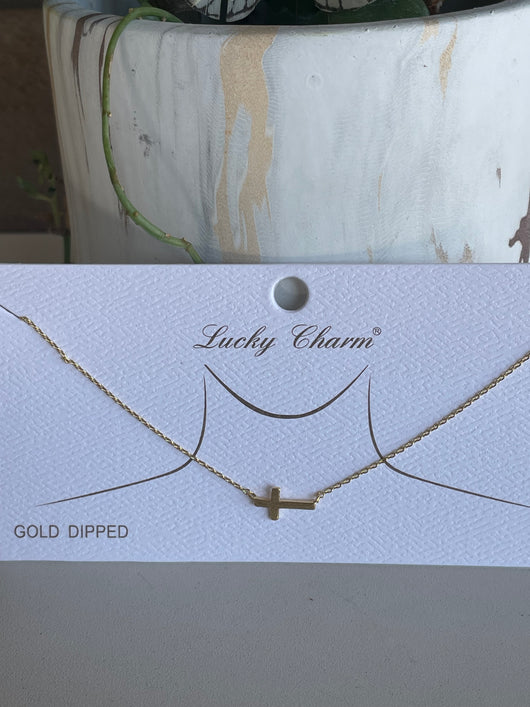 Sideways Cross Gold Dipped 15.5”-17.5” Necklace